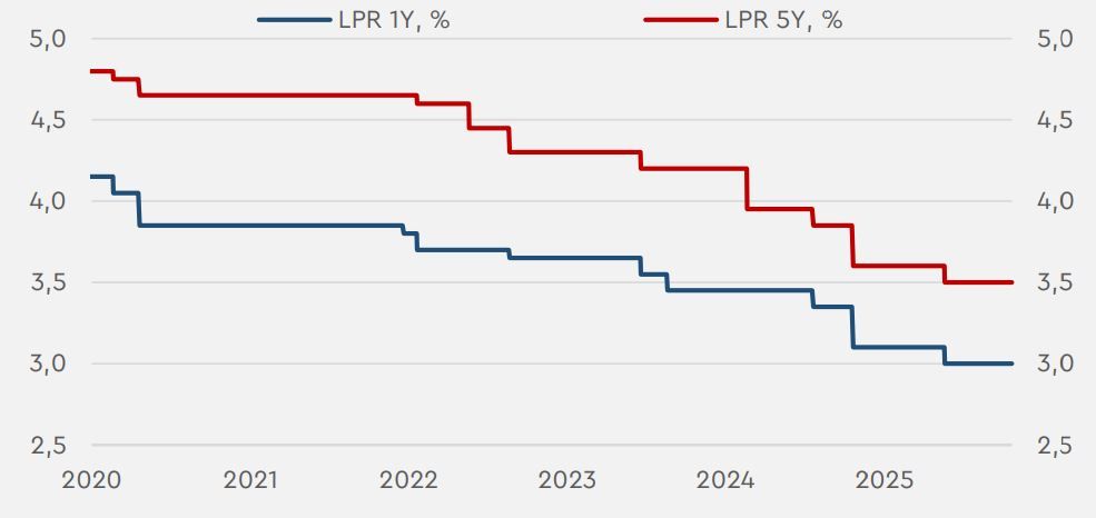 График. Динамика одно- и пятилетних ставок Loan Prime Rate в Китае.