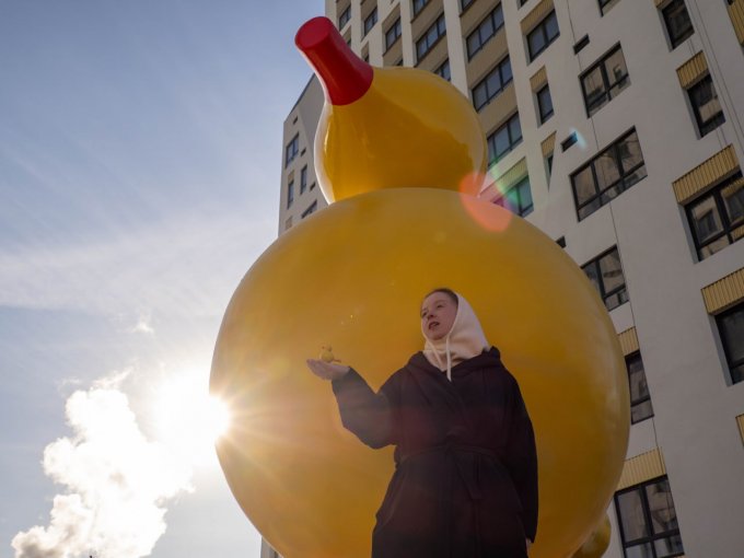 Петербургский художник Андрей Люблинский в своем узнаваемом стилет создал в Екатеринбурге арт-объект, состоящий из трех уточек. Высота каждой скульптуры составляет четыре метра.