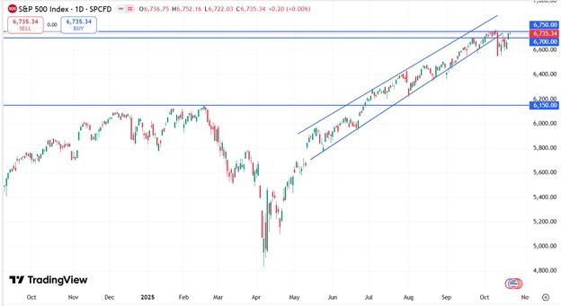 Индекс S&P 500 торгуется на уровне 6735,3 пункта. В случае пробоя сопротивления выше 6750 пунктов рынок может вернуться к восходящему движению и обновить максимумы. Удержание выше уровня поддержки в 6700 пунктов указывает на сохраняющийся потенциал роста, тогда как ее пробой может усилить коррекционные настроения.
