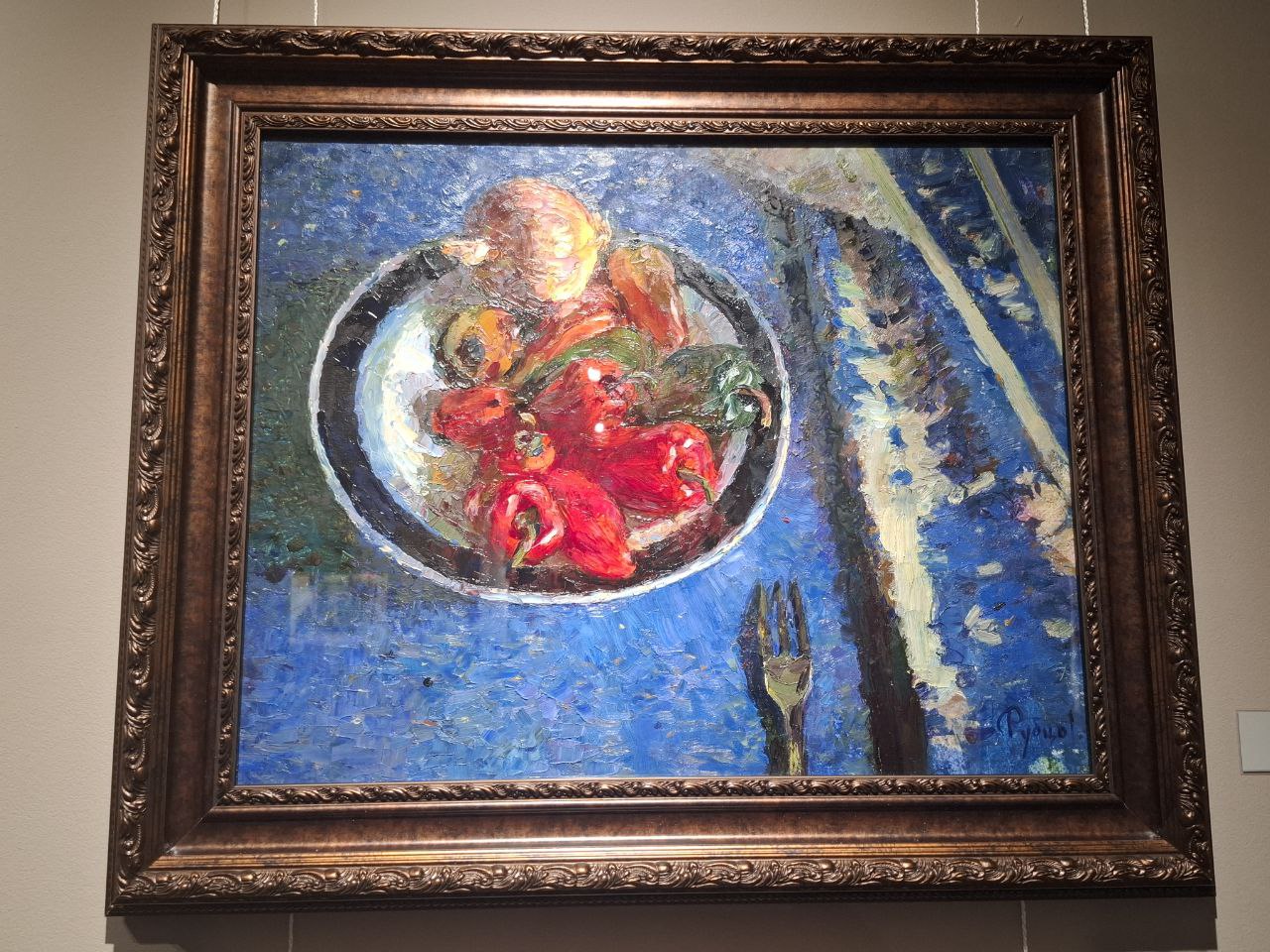 Пройдя по залам, она остановилась перед картиной Рубцова, ткнула в нее пальчиком: «Почему так темно написан хлеб? Он что горелый? Нельзя. Это неуважение к хлебу».