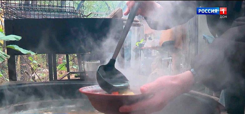 Дорога к гастрофестивалю «Дичь и рыба на Дону» непростая: на «уазиках» через лес и разлившуюся реку. Но красота окрестностей и само событие того стоят. В парке «Олений ручей» гостей уже встречают традиционно, по-казачьи. Пока организаторы проводят экскурсию, участники готовят угощения, что называется, «из-под ножа»: вокруг всё кипит, тушится и жарится.