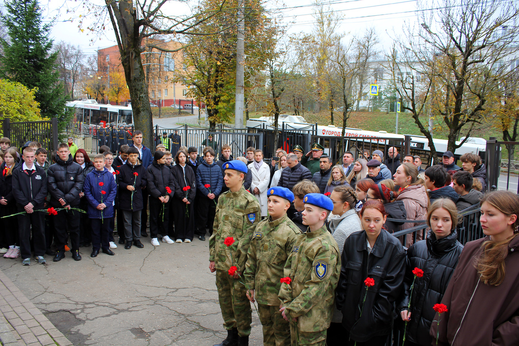 На митинге присутствовали представители смоленской военной академии ПВО, общественных ветеранских организаций, учащиеся школы, мать и друзья героя СВО.