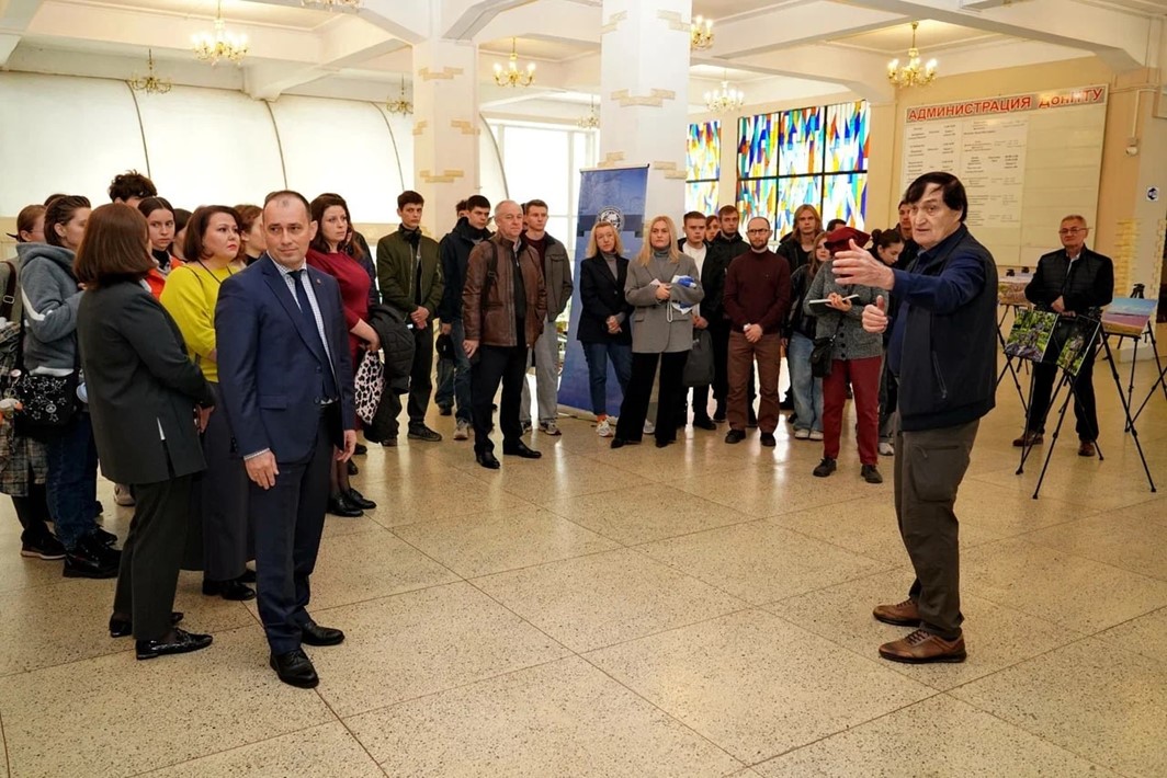 14 октября Александр Чибилев прочитал лекцию о природоохранительной деятельности РГО студентам университета. На закрытии выставки выступили проректор ДонНТУ Рязанов Андрей Николаевич, директор Южного филиала ФГБУ «ВНИИ Экология» Кишкань Роман Владимирович, декан факультета недропользования и наук о Земле ДонНТУ Филатова Ирина Викторовна, руководитель Молодежного Центра РГО в ДНР Ефимова Анна Юрьевна и руководитель Молодежного клуба РГО «Донбасс» Тонофа Алина Витальевна.