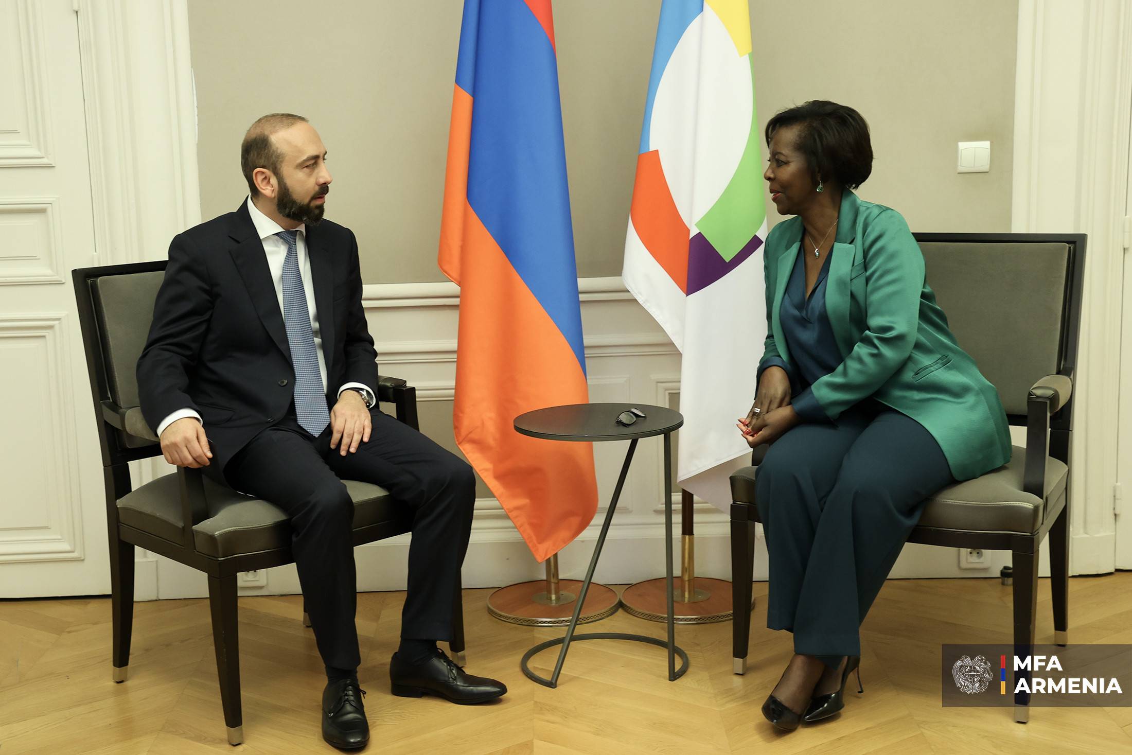 22 октября в рамках рабочего визита в Париж министр иностранных дел Республики Армения Арарат Мирзоян провeл встречу с Генеральным секретарeм Международной организации Франкофонии Луиз Мушикивабо.