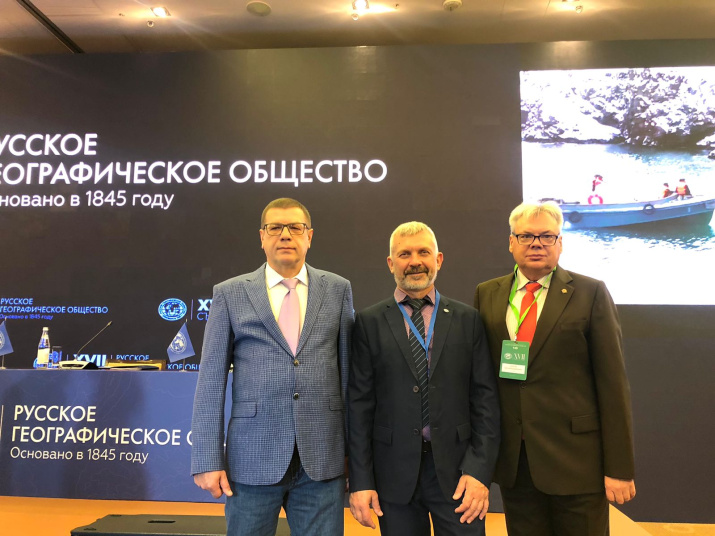 В.Воробьев, Г. Самохин и С.Сологуб на Съезде. Фото: Пресс-служба РГО