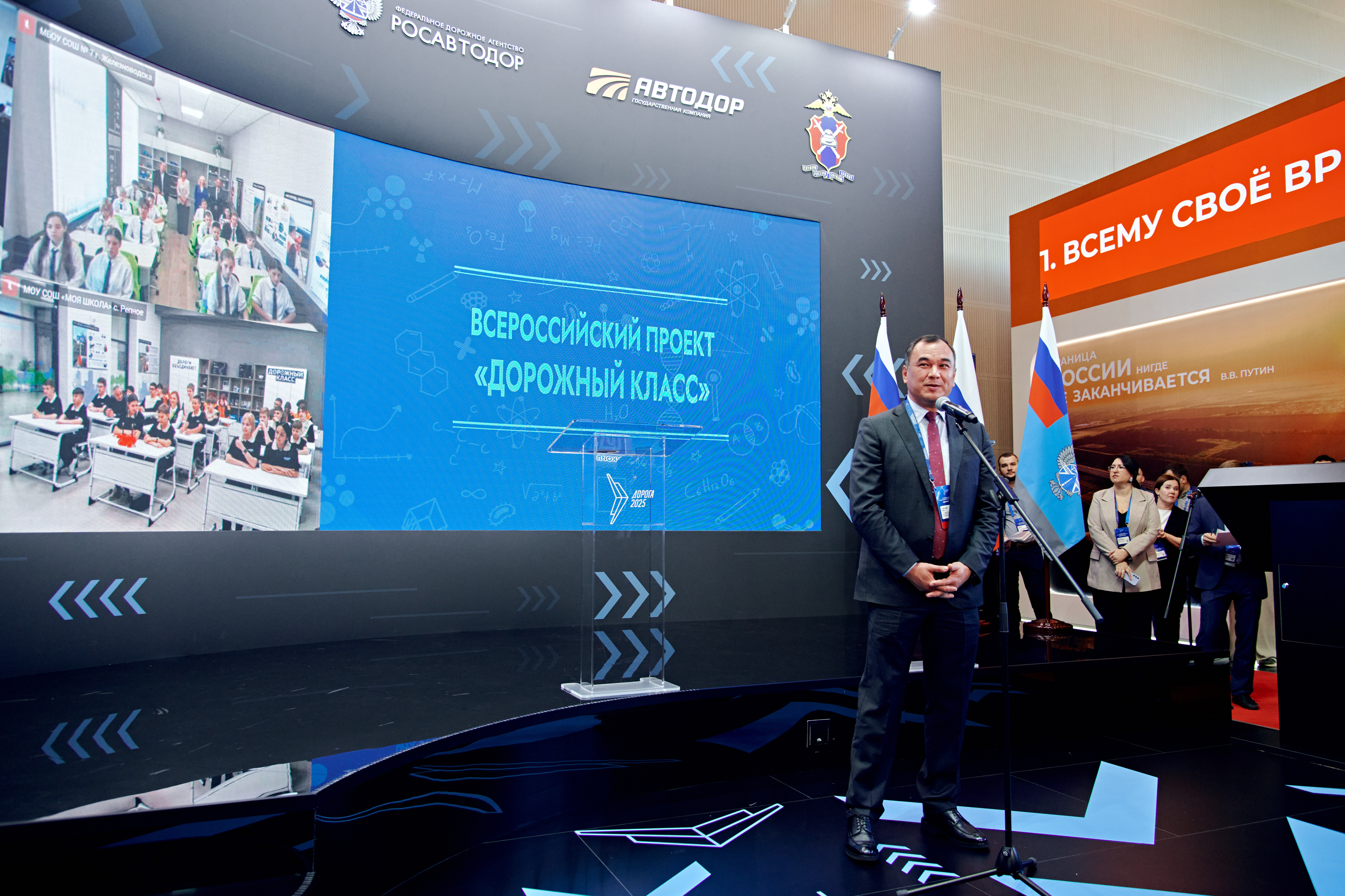 Всероссийский проект «Дорожный класс» представили сегодня на полях XII Международной специализированной выставки «Дорога 2025» в Минеральных Водах. В мероприятии приняли участие представители федеральных и региональных дорожных министерств и ведомств, образовательных учреждений и научного сообщества. В режиме видео-конференц-связи присоединились ученики и учителя из Иркутской и Белгородской областей, а также Ставропольского края ― в этих субъектах такие классы уже открыты.