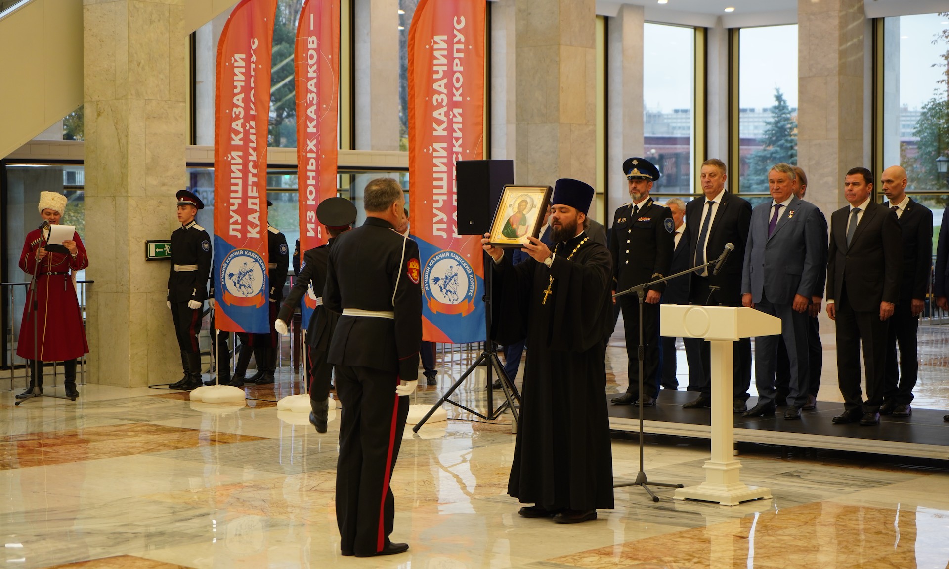— Уважаемый Дмитрий Юрьевич, Ваше Высокопреосвященство, уважаемые гости и участники торжественной церемонии передачи знамени Президента Российской Федерации лучшему казачьему кадетскому корпусу!