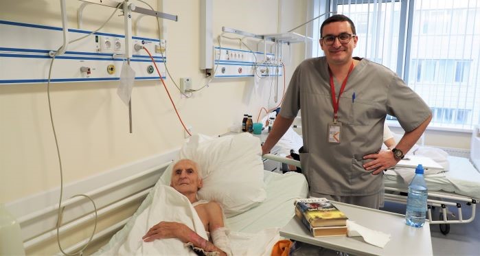 «С такой площадью ожогов возрастные пациенты редко выживают, а у нашего к тому же было около 18 % глубоких ожогов. Без операций было не обойтись — если не закрыть глубоко поражённые огнём участки тела, сам организм не сможет полностью их восстановить, и тогда человек умирает от так называемого ожогового истощения, — рассказывает врач-хирург ожогового отделения Иван Владимиров. — Кроме того, пережить в реанимации месяц с такой травмой — это тяжело физически и психологически. Там различные запахи, постоянный свет и звук приборов — уже это само по себе может негативно влиять на самочувствие. В целом пациент находится в больнице уже больше 50 дней. Он молодец, позитивный человек, здраво рассуждает, видно, что „сделан“ в Советском Союзе. И я очень рад, что мы его, наконец-то, живого перевели из реанимационного отделения в хирургическое. Сейчас анализы хорошие, напоминают анализы молодого человека, не старше 40 лет. Прогноз хороший».