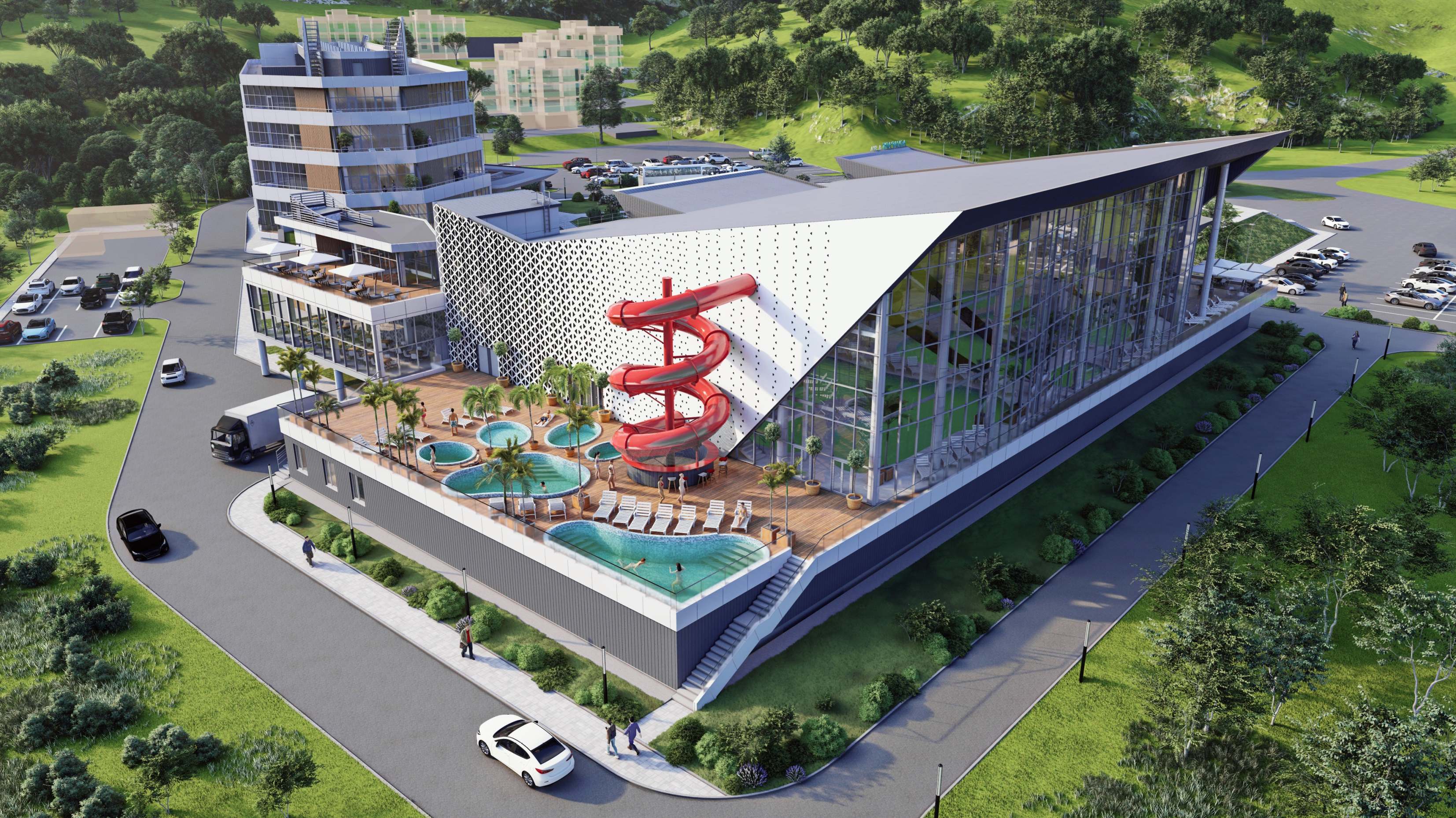 Курорт сможет принимать более 26 тыс. гостей ежегодно. Загруженность комплекса в любой сезон, вне зависимости от времени года и температуры моря, обеспечит аквапарк и другая инфраструктура, включая кафе и ресторан, прогулочные зоны.