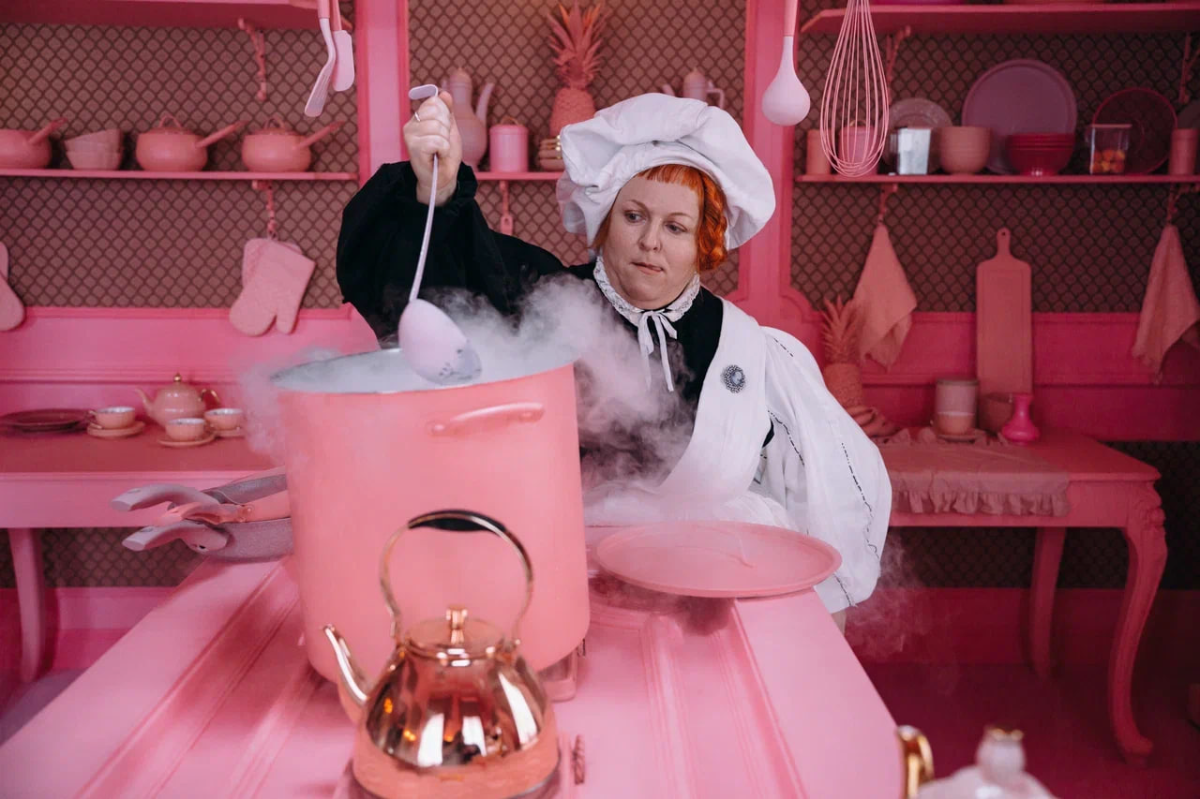 «Ключевая особенность нашего фильма — музыкальные номера на стихи Владимира Семеновича. Кроме того, мы придумали свой драматургический ход — отсутствие времени в Стране Чудес. Лучше всего эту концепцию отражает наш стол для Безумного чаепития — он в прямом смысле бесконечный. В целом мы исходили из того, что Алиса — ребенок, который вот-вот станет взрослым. Дети обычно живут без острого ощущения времени, и такая Страна Чудес помогла нам поговорить о его ценности: как его проводить, какие у него плюсы и минусы. Страна Чудес — это отражение детского взгляда Алисы. Поэтому там она встречает всех тех, с кем знакома в реальной жизни, но в их утрированной, фантастической версии».