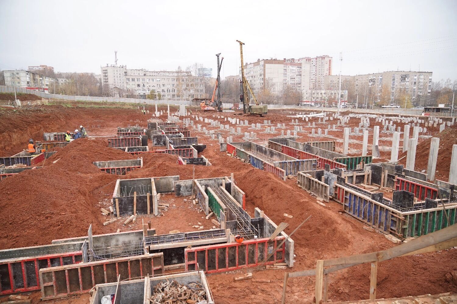 Неподалеку от парка представители делегации осмотрели стройку новой школы на улице Берша для 1100 детей.