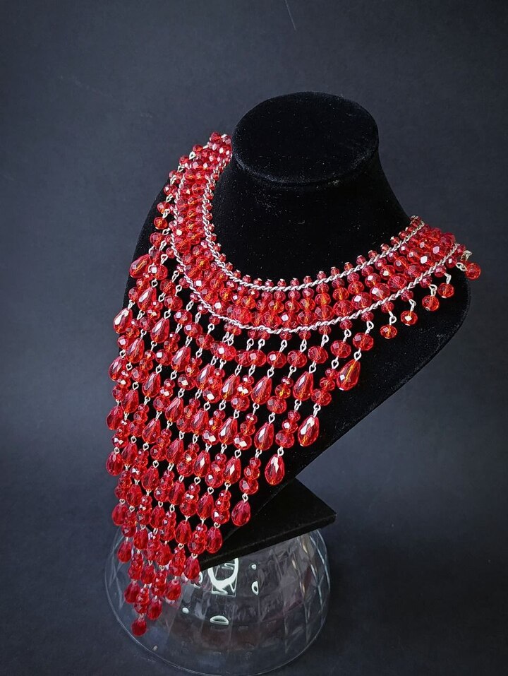 Ее любимое изделие - черное массивное наплечное колье, собранное из стеклянных и хрустальных бусин. Создала его три года назад. И уже несколько раз повторила по просьбам клиенток.