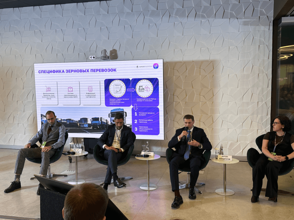 1 октября 2025 года в Москве состоялся международный форум цифровых технологий в сфере транспорта и логистики «Цифровая транспортация 2025». Антон Кондратов, генеральный директор компании Smartseeds (входит в «Деметра-Холдинг») выступил на трёх ключевых площадках форума, представив передовой опыт в сфере цифровизации документооборота в грузоперевозках зерна.