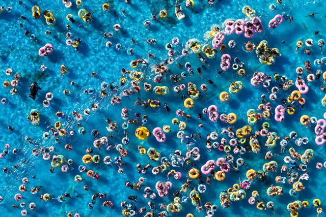 10. Местные жители охлаждаются в аквапарке в жаркий день, 23 августа 2025 года, в Нанкине, провинция Цзянсу, Китай. (Фото: Фан Дунсюй/VCG via Getty Images)