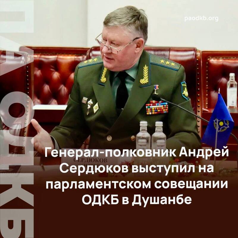 23 октября в Душанбе в Парламенте Республики Таджикистан начальник Объединенного штаба ОДКБ генерал-полковник Андрей Сердюков выступил с докладом на заседании Координационного совещания председателей комитетов (комиссий) по обороне и безопасности парламентов стран ОДКБ при Совете Парламентской Ассамблеи Организации.