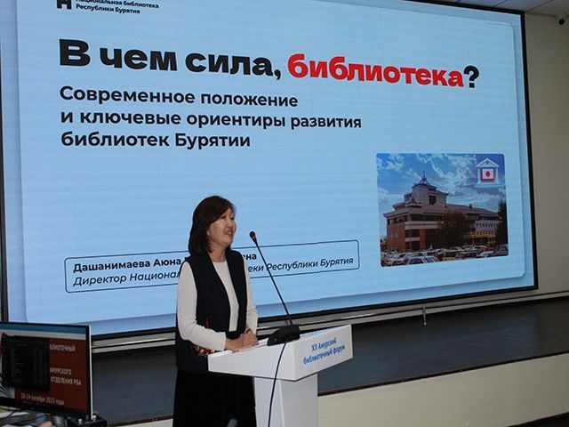 21 октября состоялось главное событие форума – I конференция Амурского регионального отделения Российской библиотечной ассоциации. В ней приняли участие руководители библиотек Дальневосточного региона, в их числе директор Национальной библиотеки Аюна Дашанимаева. Также в работе конференции приняли участие директора муниципальных библиотек области и представители библиотек учебных заведений Благовещенска.