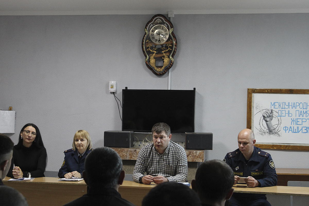 В следственном изоляторе №5 УФСИН России по Республике Татарстан в рамках Курсов подготовки к освобождению сотрудники группы социальной работы с осужденными и отдела пенитенциарной пробации организовали встречу представителем центра занятости населения Чистополя, приглашенным экспертом стал представитель одного из ведущих предприятий республики Ришат Ахунов.