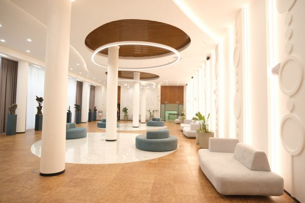 Для посетителей театра обустроены просторные холлы и фойе, современное кафе, а также многофункциональный конференц-зал для творческих мероприятий. Второй этаж отдан под пространство для занятий актерским мастерством, где уже начали заниматься ученики школы № 17 города Волжского. Губернатор пообщался с ребятами и их наставником, которые выразили благодарность за преобразившийся театр.