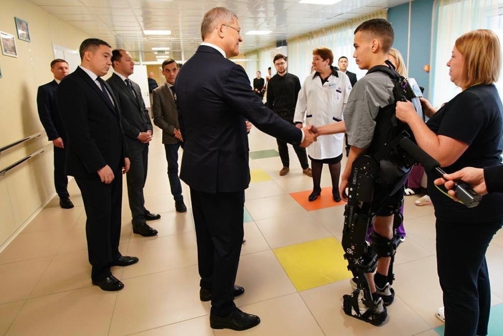 В ходе визита Радий Хабиров осмотрел различные помещения «Салюта»: столовую, мастерские, зал ЛФК, бассейн, кабинет психолога, сенсорную комнату, стоматологический блок для лечения под наркозом и учебные классы центра «Йондоз».