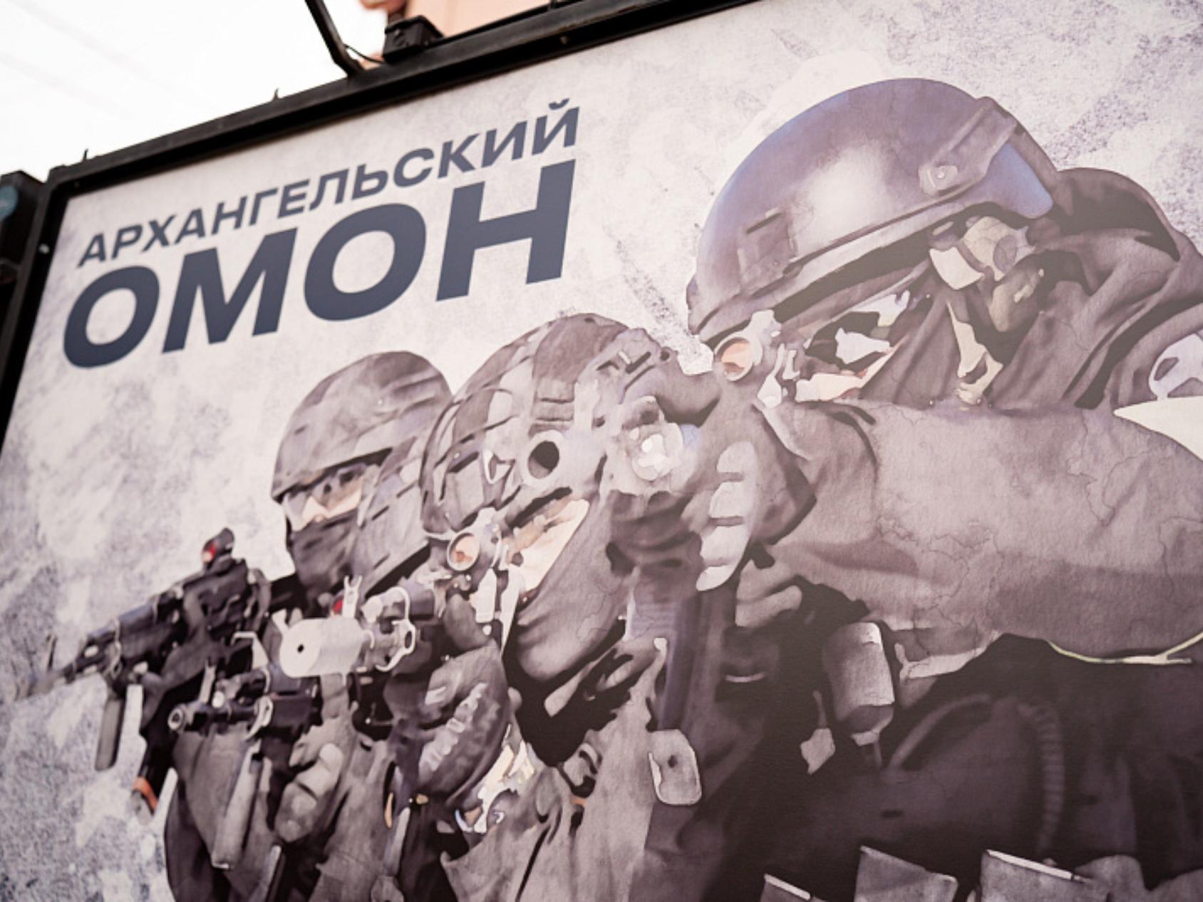На проспекте Чумбарова-Лучинского представили уличную фотовыставку «Архангельский ОМОН – верность долгу и служение Родине»