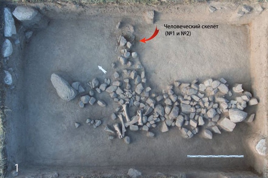 Раскопки показали, что под культурными слоями бронзового века скрывались более древние следы человеческой деятельности. Именно там археологи нашли овальную яму с останками двух человек — взрослого и подростка. Радиоуглеродный анализ костей позволил установить, что захоронение датируется периодом между 5471 и 5222 годами до нашей эры, что делает его самым ранним известным погребением на территории Казахстана.