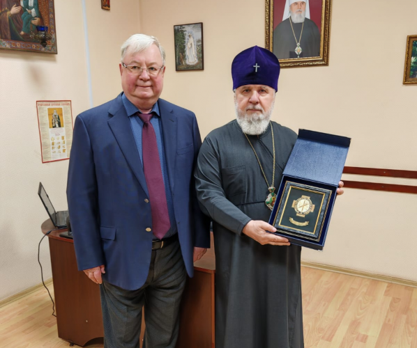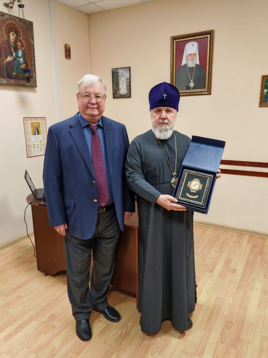 Председатель ИППО вручил Высокопреосвященнейшему Мефодию, митрополиту Пермскому и Кунгурскому плакату со знаком ИППО.