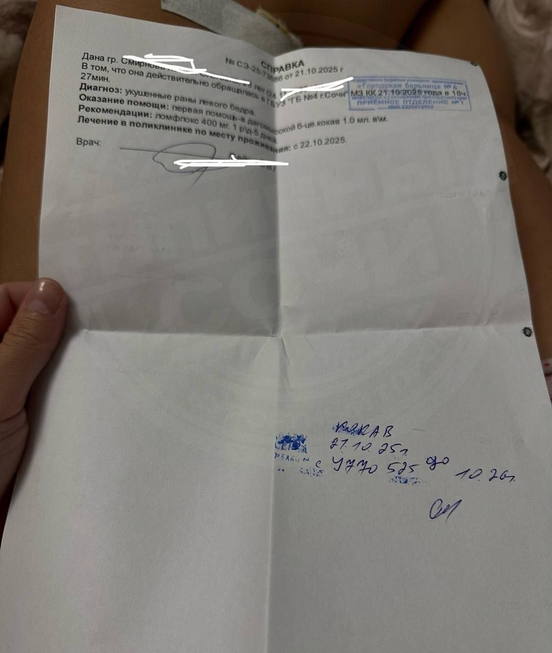 Жительница поселка Дагомыс рассказала, что 21 октября на нее напало агрессивное животное. Женщина шла вместе с супругом по улице Армавирской в районе поликлиники №4, как вдруг на нее набросилась собака.