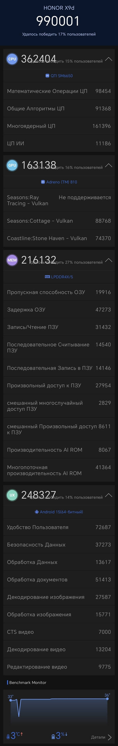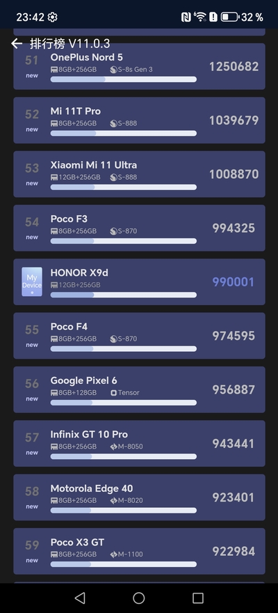 В AnTuTu 10 модель набрала 990 001 очко и заняла 54-ю строчку по производительности среди Android-устройств: