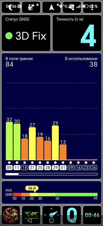 В области навигации смартфон охватывает все основные спутниковые системы, включая GPS, ГЛОНАСС, Beidou и Galileo, QZSS и NAVIC. При холодном старте первое определение позиции занимает около 10 секунд, а точность в условиях городской застройки составляет примерно 4 м.