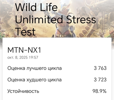 - Wild Life Unlimited Stress Test — 3763 (лучшая), 3723 (худшая)
