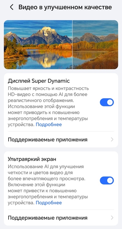Экран поддерживает стандарты HDR10 и HDR10+, а при воспроизведении соответствующего контента яркость на бликах достигает 6000 нит. Что касается мерцания, то используется ШИМ-затемнение с частотой 3840 Гц, а уровень мерцания при яркости 10% составляет менее 8%.
