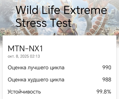 - Wild Life Extreme Stress Test — 990 (лучшая), 988 (худшая)