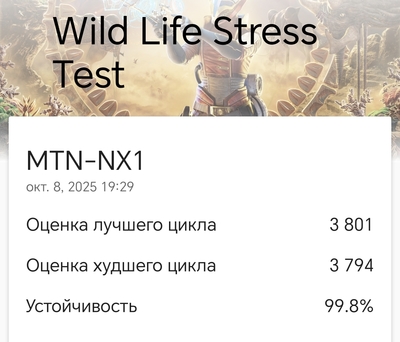 - Wild Life Stress Test — 3801 (лучшая), 3794 (худшая)