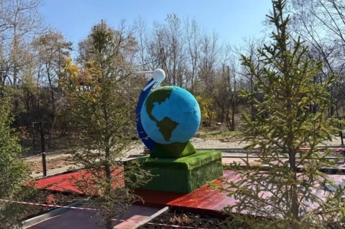 К знаковым элементам территории относится скульптура в виде земного шара с первым искусственным спутником Земли, обозначающая связь с названием станции «Спутник».
