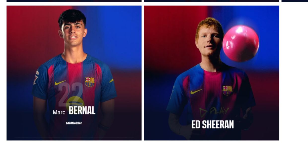 Пресс-служба «Барселоны» на официальном сайте клуба добавила в состав основной команды известного британского поп-исполнителя Эда Ширана. Каталонский клуб периодически проводит акции в рамках партнёрства с популярным сервисом Spotify, и ранее на футболках клуба появлялись известные звёзды мировой музыки.