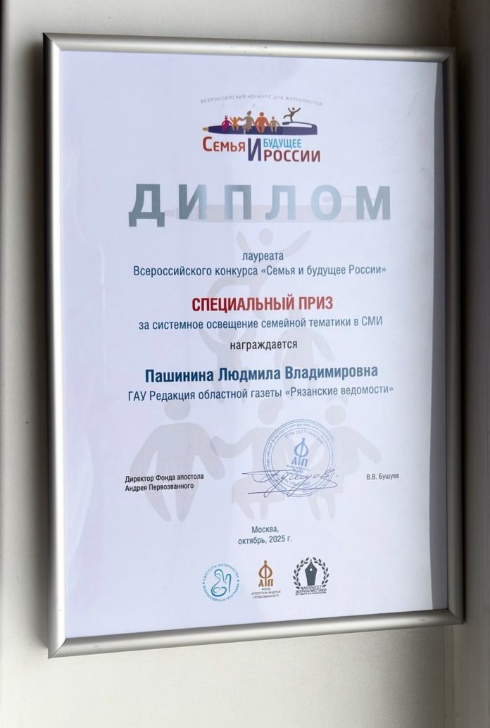 Газета удостоена диплома лауреата Всероссийского конкурса «семья и будущее России».