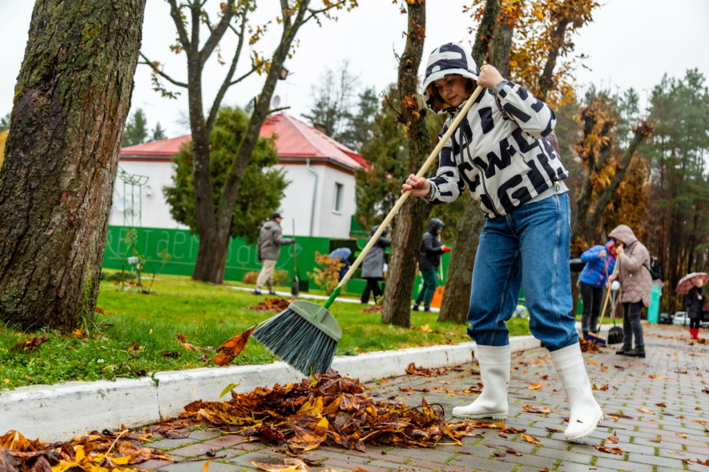 Несмотря на хмурое осеннее небо, на территории детского санатория «Свислочь» в Осиповичском районе царила по-настоящему солнечная атмосфера. Более ста сотрудников, вооруженных граблями, садовым инвентарем и позитивным настроением, доказали, что настоящий праздник труда создают люди. Благодаря их энтузиазму место, где круглый год отдыхают и поправляют здоровье дети со всей Беларуси, получило новый заряд свежести и уюта. Были убраны опавшие листья и сухие ветки, приведены в порядок цветники и газоны. Особое внимание уделили объектам, от которых напрямую зависит досуг маленьких отдыхающих, – игровому оборудованию, спортплощадке и беседкам.