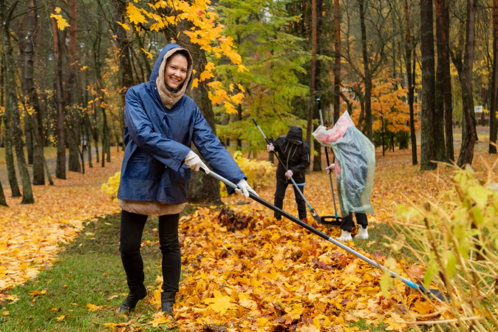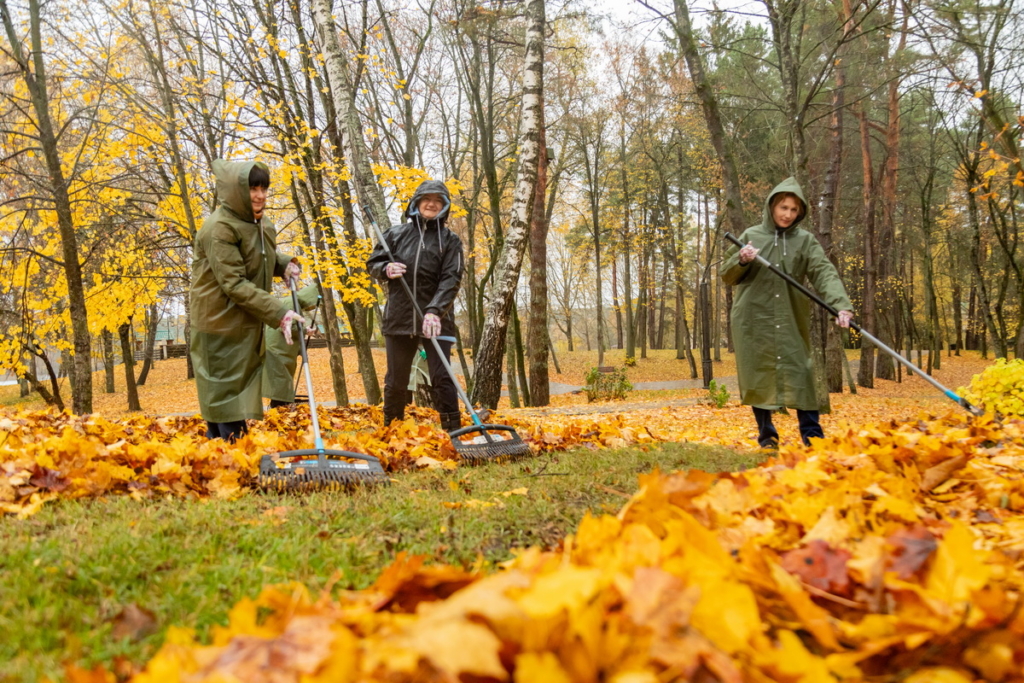 В санатории активисты привели в порядок около двух гектаров земли. Собранная листва аккуратно собрана для последующей утилизации.