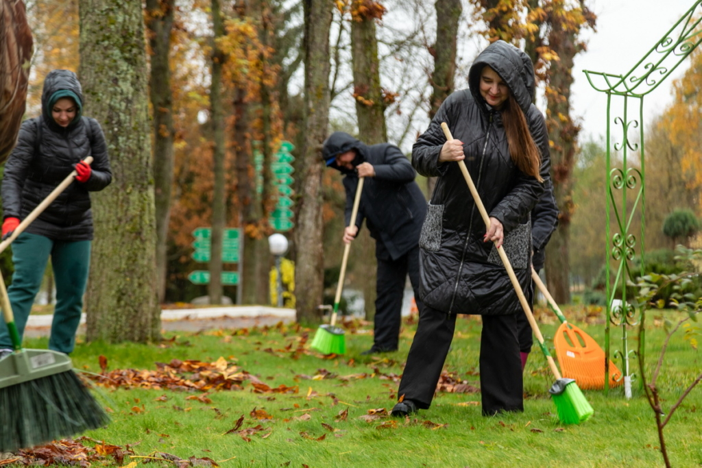 Работники санатория «Приднепровский» вышли на субботник, чтобы улучшить свою обширную территорию, раскинувшуюся на 33,08 гектара. Фронт работ был действительно велик: сотрудники убирали опавшую листву, занимались ремонтом и перекладкой пешеходных дорожек, а также обновляли малые архитектурные формы, спортивные площадки.