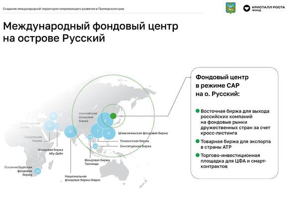 - Восточную биржу — площадку для привлечения капитала из дружественных стран и выхода российских компаний на азиатские финансовые рынки.