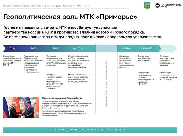 Минвостокразвития Россиинаправилокитайской стороне подготовленный «Кристаллом роста» проект межправсоглашения о создании МТОР в Приморье.