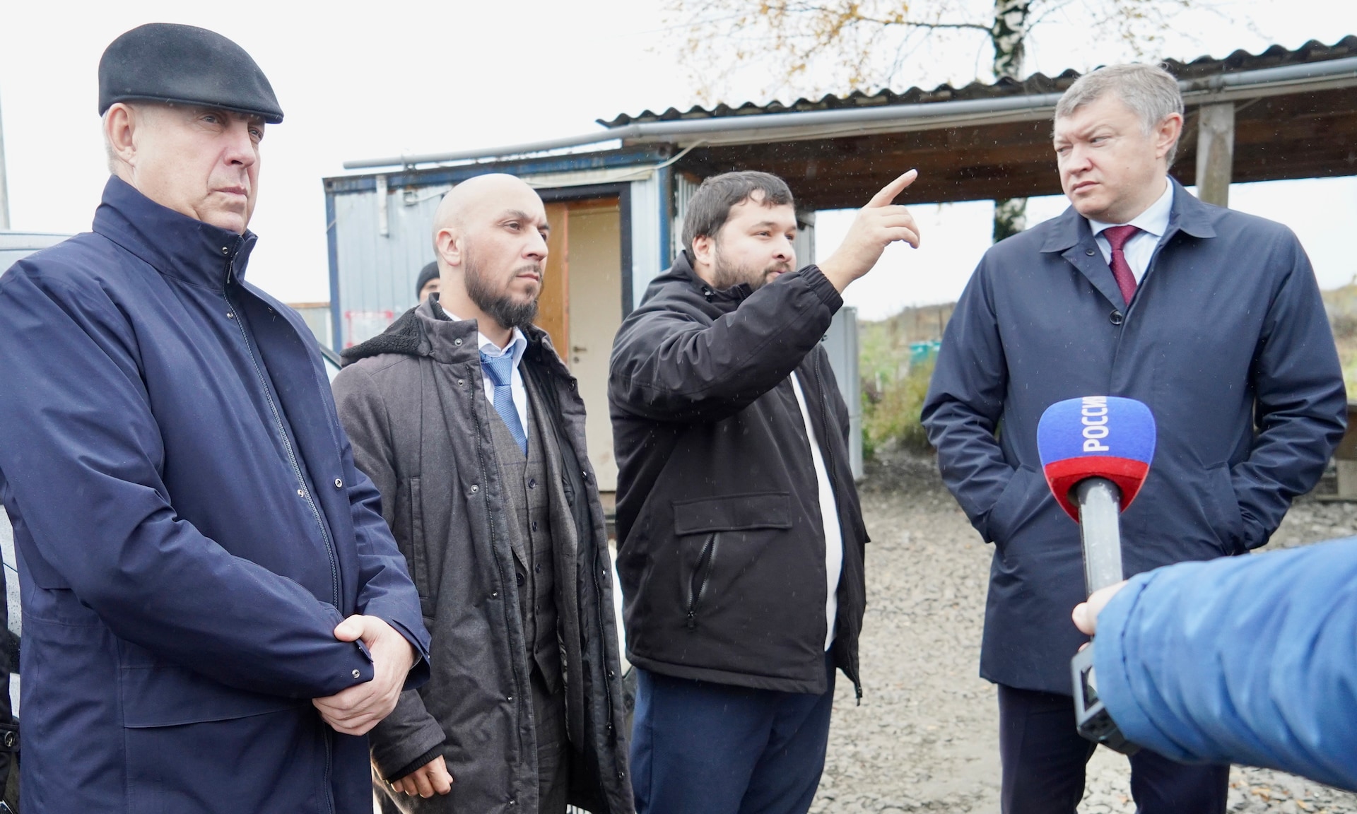 После совещания Губернатор Александр Богомаз, заместитель Министра природных ресурсов и экологии Евгений Марков и заместитель директора Департамента экономики замкнутого цикла Борис Французов ознакомились с ходом строительства второй очереди полигона по утилизации ТКО в Большом Полпино.