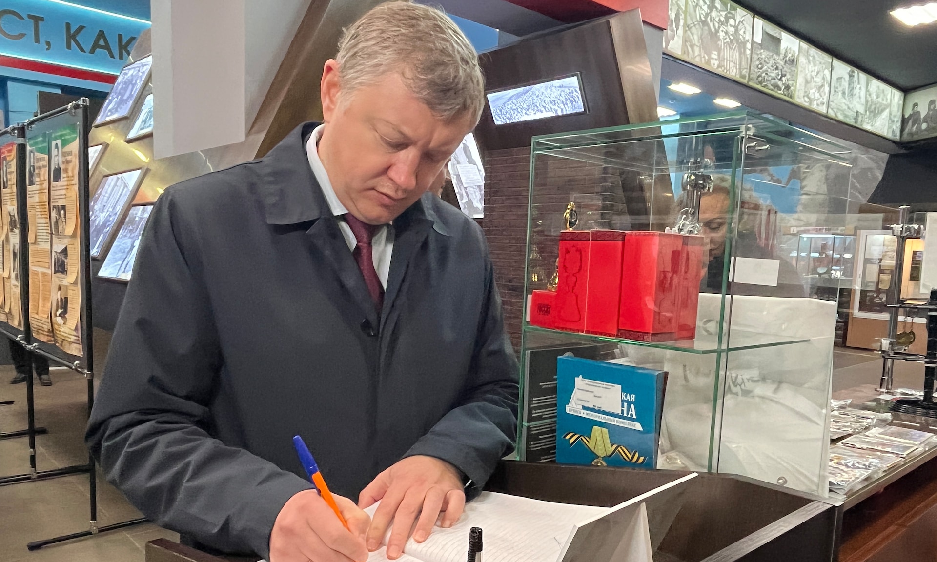 Евгений Марков оставил запись в книге почетных гостей, отметив, что хранить память о подвигах наших предков — важнейшая задача, особенно в нынешнее время.