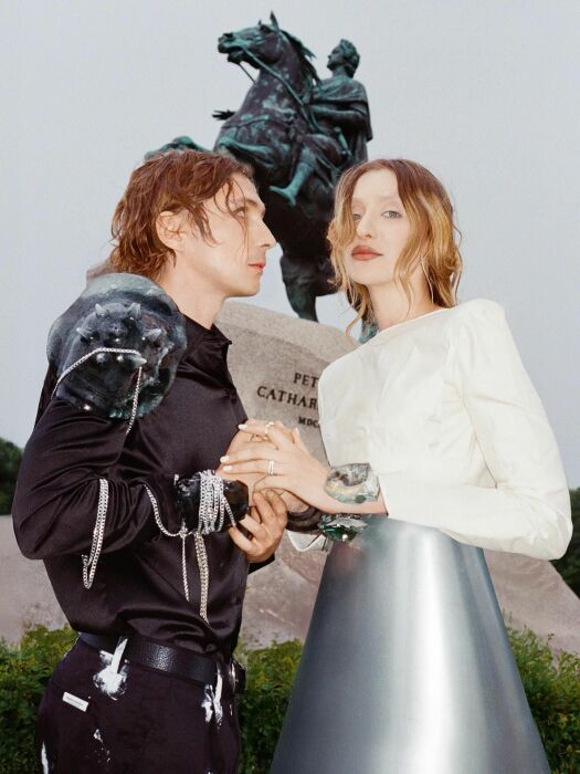 Они расписались в Краснодаре 3 сентября, ровно через год после судьбоносной встречи в подворотне. Но их бракосочетание стало не финалом, а скорее началом большого перформанса под названием «семейная жизнь». Они появились в загсе в футболках и шортах, демонстрируя пренебрежение к формальностям, но с неподдельной серьёзностью относясь к самому факту союза. Вскоре последовала и настоящая праздничная церемония в Санкт-Петербурге, где Маша сменила несколько дизайнерских нарядов, а Александр представал то в образе нео-рыцаря, то в роскошной шубе.