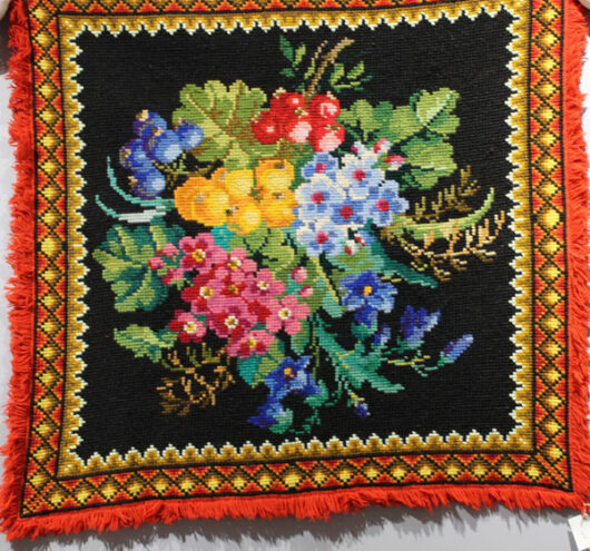 Роскошный букет на черном фоне выткала в 1938 году ставропольчанка Александра Георгиевна Нестерова (в девичестве Богородицкая). Ее супруг, Николай Алексеевич Нестеров, был тем самым директором школы и классным руководителем «огненного выпуска». В 1941 году он вместе со своими учениками ушел добровольцем на фронт и не вернулся. Вдова пережила его ненадолго.