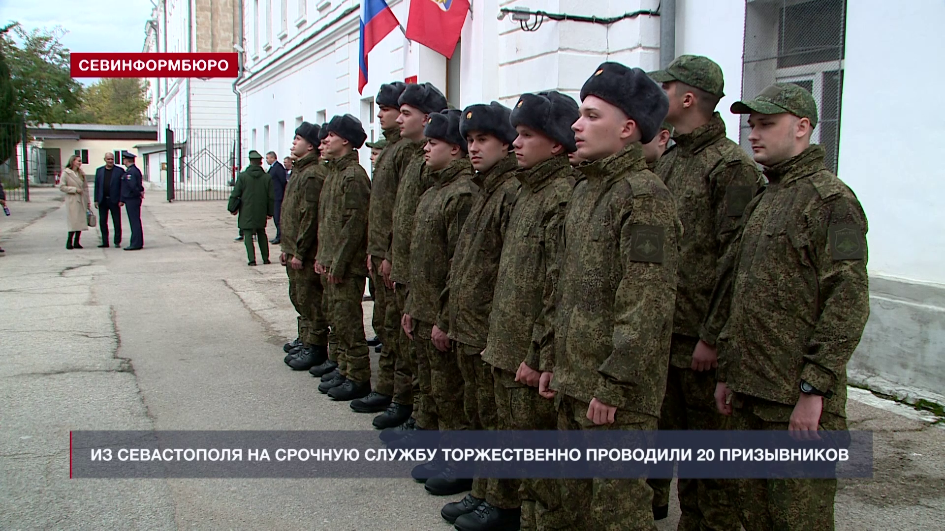 В среду, 22 октября, на срочную службу торжественно проводили 20 севастопольских призывников. Всего в осеннюю кампанию, которая продлится до 31 декабря, отдавать долг Родине из нашего города отправятся около 400 человек. Около половины останутся служить в Севастополе, остальных ожидает дорога в Липецк и Наро-Фоминск.