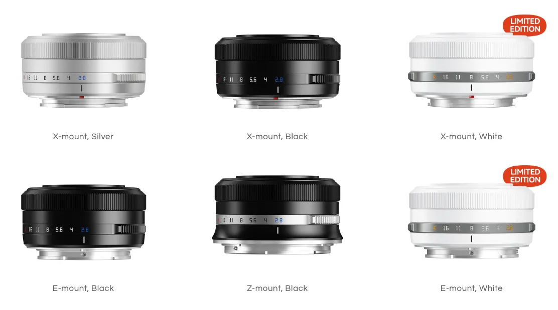TTartisan AF 27mm F/2.8 теперь выпускается в трех цветовых решениях: серебристом, черном и белом. Выглядят они следующим образом: