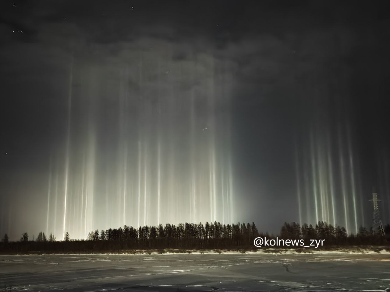 Световые столбы зимой – это оптическое атмосферное явление, возникающее из-за отражения света от крошечных ледяных кристаллов, парящих в воздухе.