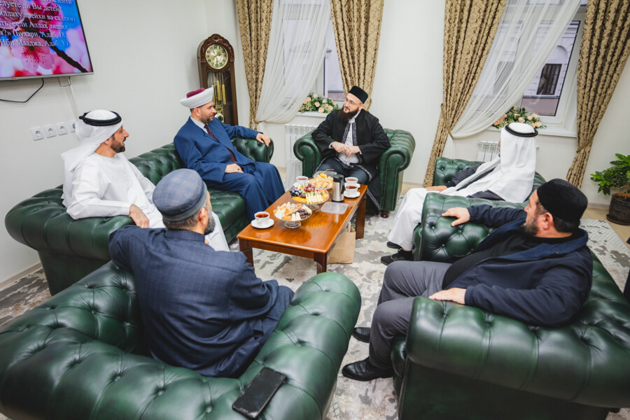 В 1-й день месяца Джумадаль-авваль (23 октября), Муфтий Камиль хазрат Самигуллин встретился с участниками II Всероссийского симпозиума с международным участием «Традиции и инновации в мусульманском образовании России». Среди гостей – член Генерального секретариата Совета по делам религии Ливанской Республики Файз Мустафа Сейф; декан гуманитарного факультета университета короля Халида, профессор, доктор филологических наук, член редколлегии серии учебников по арабскому языку Салех Абдулла аль-Шасри (КСА); профессор Университета гуманитарных наук имени Мухаммада бен Зайеда, доктор исламских наук, экс-министр вакуфов Иордании Мухаммад Нух аль-Куда (ОАЭ), а также преподаватель университета Имама Ашари Абдуррахман Абдурахманов (Республика Дагестан). Во встрече также принял участие всемирно известный богослов, обладатель наивысшей степени по хифзу Куръана (знаток 10 кыраатов), главный судья и председатель жюри в конкурсах по Куръану в странах Персидского залива, потомок пророка Мухаммада ﷺ, член Комиссии по подготовке рукописного Куръана в Казани шейх Маъмун ар-Рави.
