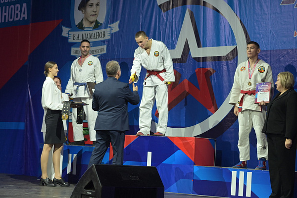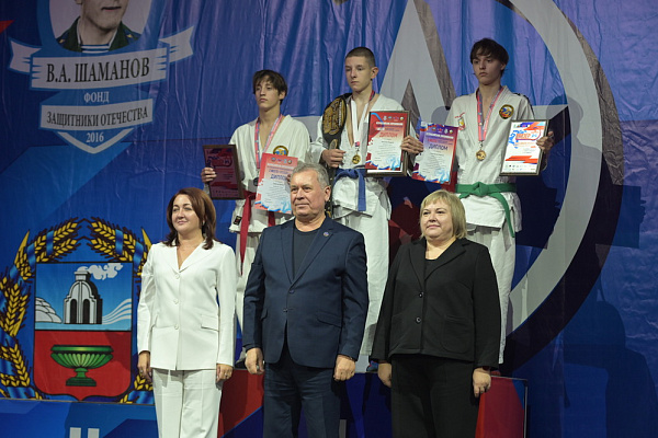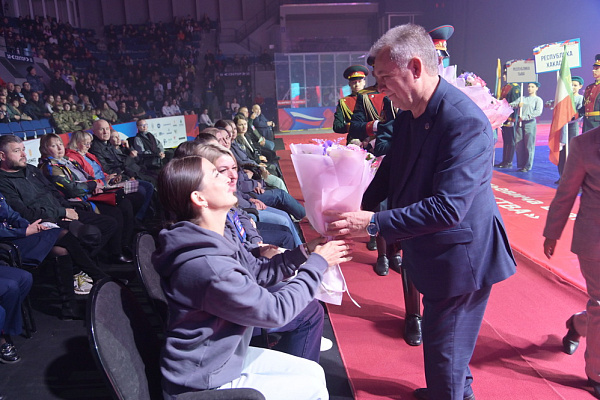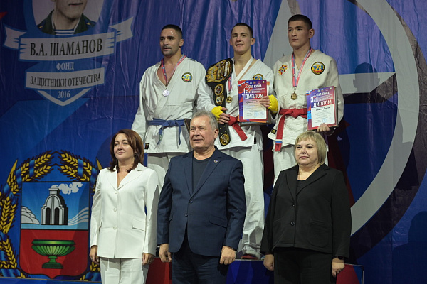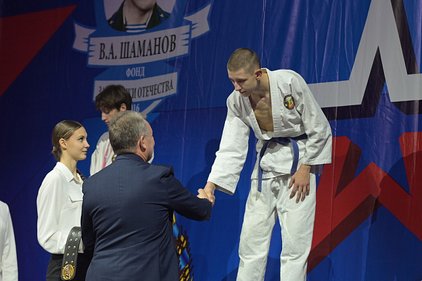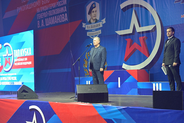 В минувшие выходные, 25 и 26 октября, в краевой столице прошел этап Кубка Вооруженных сил РФ по армейскому рукопашному бою на призы Героя России Владимира Шаманова. Председатель краевого Законодательного Собрания Александр Романенко поприветствовал участников и гостей турнира и вручил награды победителям. Этап Кубка Вооруженных сил РФ по армейскому рукопашному бою на призы Героя России Владимира Шаманова — один из самых значимых турниров по этому виду спорта в стране и главный в Алтайском крае. В Барнауле он проводится уже в одиннадцатый раз. Ежегодно в соревнованиях принимают участие лучшие бойцы страны: десантники, ракетчики, танкисты, пехотинцы, разведчики, спецназовцы. Всего около 70 спортсменов, которые прошли предварительный отбор на уровне военных округов и родов войск. В рамках турнира также прошли Всероссийские соревнования по армейскому рукопашному бою среди допризывной (15-17 лет) и призывной молодежи (18-26 лет). В этих стартах приняли участие более 200 спортсменов из 15 команд, которые представляли Москву, Урал, Забайкальский край и все регионы Сибирского федерального округа. Финальные поединки во всех возрастных категориях прошли в воскресенье в «Титов Арене». Среди почетных гостей турнира — герои России и Советского Союза Олег Скрипочка, Руслан Кокшин, Аркадий Корольков, Юрий Цветов и Игорь Станкевич, жены и родители героев специальной военной операции, спикер АКЗС Александр Романенко, сенатор РФ Наталья Кувшинова, министр социальной защиты населения региона Наталья Оськина, депутат АКЗС Сергей Приб, глава Барнаула Вячеслав Франк, руководители правоохранительных органов, общественных и ветеранских организаций Алтайского края. Открывая турнир, Александр Романенко отметил символичность его проведения в год 80-летия Великой Победы и Год защитников Отечества. Со словами особого уважения и признательности он обратился к женам и родителям участников спецоперации: «От всех жителей Алтайского края благодарю вас за то, что вы воспитали таких сыновей, за то, что вы вдохновляете ваших мужей. Пусть их нет сегодня среди нас, но память о них будет вечной, как вечна память о ветеранах Великой Отечественной войны». После завершения финальных поединков Александр Романенко вместе с сенатором РФ Натальей Кувшиновой и руководителем регионального филиала фонда «Защитники Отечества» Ларисой Панфиловой вручил награды победителям Кубка на призы Героя России Владимира Шаманова. |